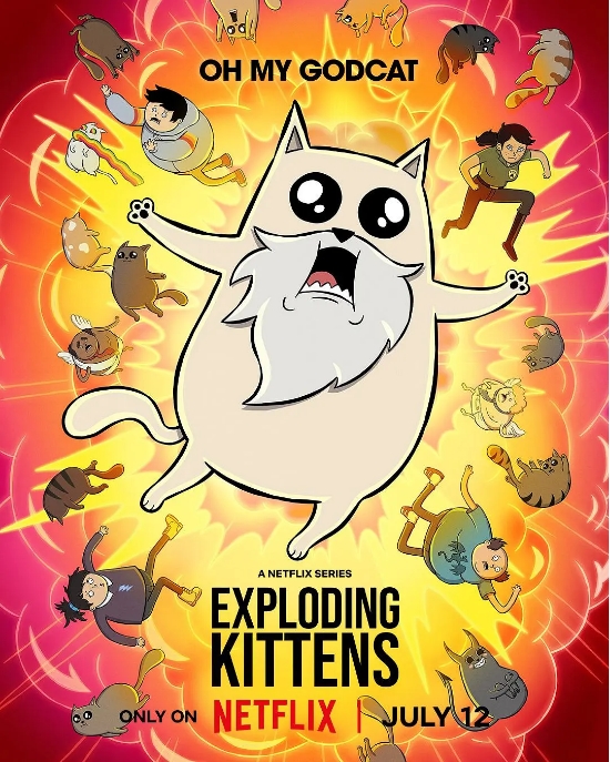 《爆炸猫》(Exploding Kittens)这部2024年推出的动画喜剧,改编自同名热门卡牌游戏,由Netflix和游戏原创团队联手打造。剧集延续了游戏中荒诞幽默的基调,讲述上帝(汤姆·艾利斯 配音)被贬到凡间变成胖猫后,与性格迥异的地狱守卫猫(萨希尔·泽玛塔 配音)展开的爆笑冒险。