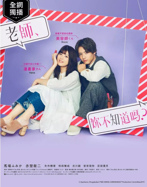 这部2019年冬季播出的深夜档日剧《老师,你不知道吗?》改编自浅野绫的同名漫画,由新生代演员马场富美加和赤楚卫二搭档主演。故事讲述人气漫画家青井华(马场富美加饰)与美容师城户理一(赤楚卫二饰)之间年下恋的甜蜜故事。