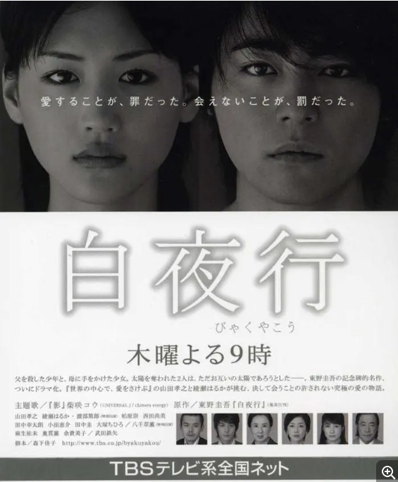 2006年TBS电视台推出的日剧版《白夜行》,堪称东野圭吾小说影视化的一座高峰。这部由山田孝之和绫濑遥主演的11集连续剧,以细腻的叙事和震撼的表演,完美还原了原著中那段令人窒息的共生关系。