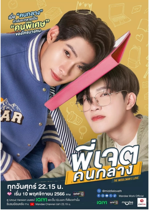 《中间爱情》(原名:พี่เจตคนกลาง)是2023年泰国备受关注的一部同性爱情剧,由新生代导演坦纳民·翁斯坤帕执导。这部剧以轻松幽默的基调,讲述了一段发生在万年老二角色身上的浪漫故事,展现了泰国BL剧在题材和叙事上的新探索。