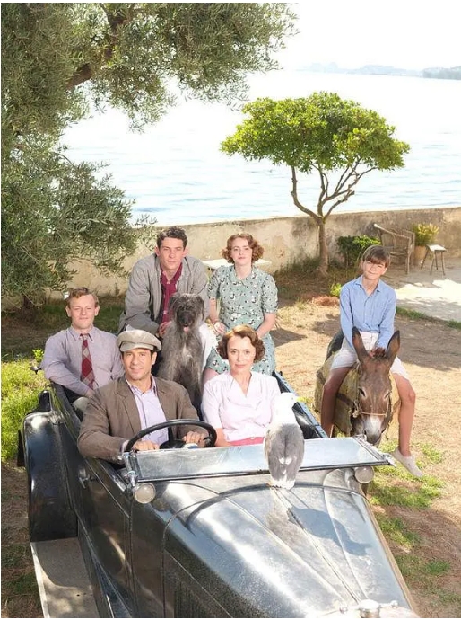 剧中凯莉·霍斯饰演的路易斯·德尔雷堪称英剧史上最鲜活的母亲形象之一。丈夫早逝后,这位英国中产女性毅然卖掉家产,带着:沉迷枪械的大儿子劳伦斯(后来成为著名作家)、动物痴迷者杰瑞(原著作者原型)、恨嫁少女玛戈和书呆子莱斯利,搬到物价低廉的希腊小岛。剧组在科孚岛实地取景的画面美得让人心醉——湛蓝的海水、蜜糖色的老建筑,与这一家子鸡飞狗跳的生活形成奇妙反差。