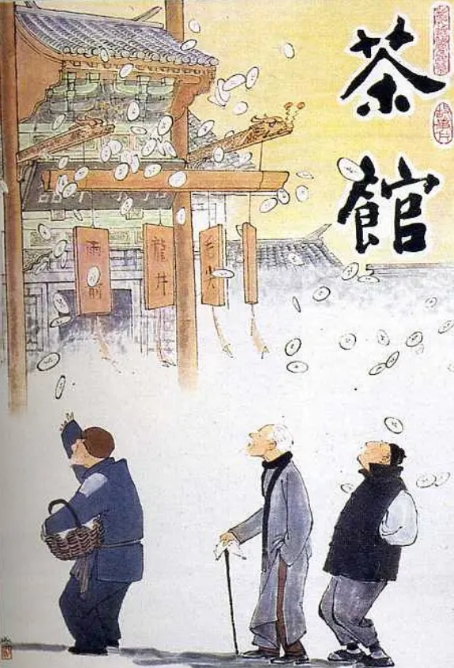 导演谢添在改编时特别注重保留话剧的文学性,同时运用电影语言拓展叙事空间。比如通过茶馆陈设的变化暗示时代更迭:从清朝的八仙桌到民国的西式家具,最后变成简陋的条凳,这些细节无声地诉说着时代的沧桑。影片中莫谈国事的标语在不同时期反复出现,成为点睛之笔,暗示着普通百姓在动荡时局中的生存智慧。