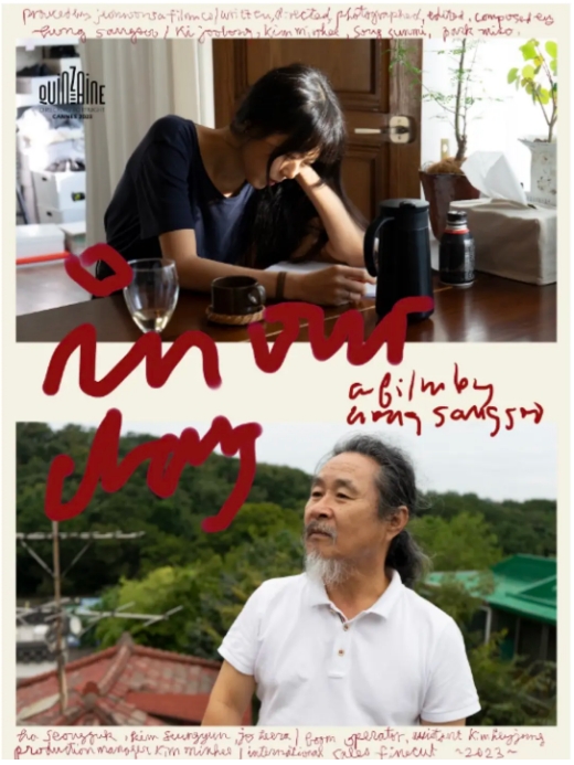 在2023年戛纳电影节首映的韩国电影《我们的一天》(우리의 하루),是导演洪常秀的第29部长片作品。这位以极简风格和日常叙事闻名的导演,再次用84分钟的片长勾勒出生活的微妙质感。影片延续了洪氏美学的标志性特征:自然光拍摄、大量对话场景、看似随意却精心设计的镜头调度,以及对于人际关系的细腻观察。