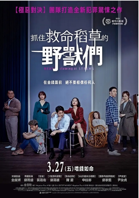 影片英文名Beasts Clawing at Straws源自西方谚语溺水者连稻草也要抓,精准概括了这群被生活逼入绝境的小人物。当郑雨盛饰演的商人跪在码头数钱时,钞票上的血迹与海水混合成粉红色泡沫,这个极具诗意的镜头道出了金钱与暴力的永恒命题。影片最终没有给出廉价的救赎,而是让所有角色在欲望的泥潭中越陷越深,这种冷酷的结局反而更显真实。