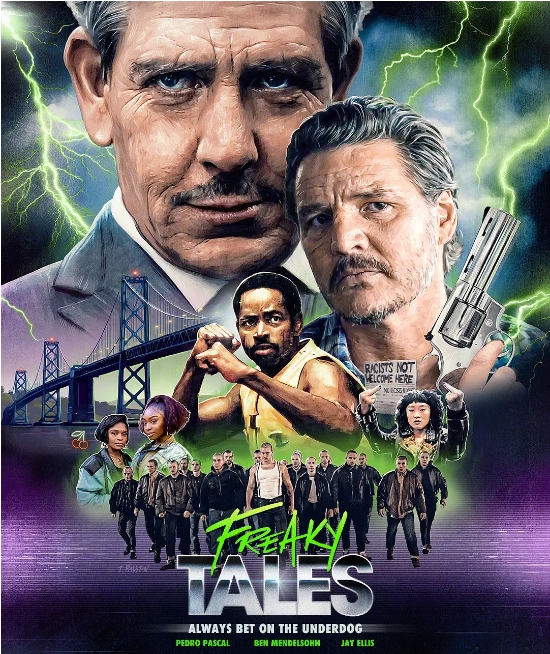 由《惊奇队长》导演组合安娜·波顿和瑞安·弗雷克带来的新作《怪诞故事》(Freaky Tales)堪称2024年最混搭的黑色喜剧。这部在圣丹斯电影节首映的作品,将80年代复古风、B级片元素和奥克兰地下文化炖成一锅令人瞠目结舌的大杂烩。