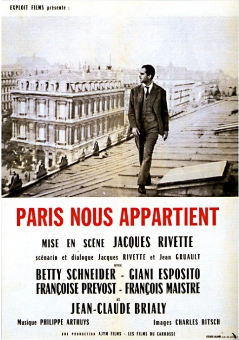 1961年上映的《巴黎属于我们》(Paris nous appartient)是法国新浪潮导演雅克·里维特的长片处女作。尽管被归类为悬疑片,但这部电影更像是一幅用谜题编织的巴黎知识分子群像。影片以年轻女子贝蒂·施奈德饰演的文学专业学生视角展开,她偶然卷入一场涉及戏剧排练、政治阴谋与神秘死亡的事件中,逐渐发现巴黎表面下的暗流涌动。
