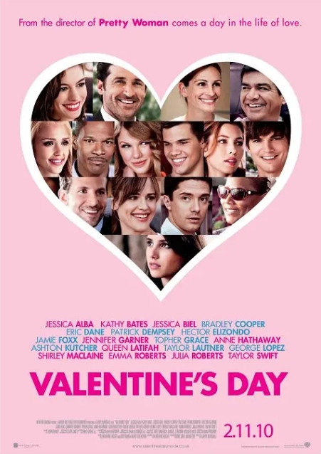 由《风月俏佳人》导演盖瑞·马歇尔操刀的《情人节》(Valentine’s Day)堪称好莱坞浪漫喜剧的全明星盛宴。这部2010年上映的应景之作,就像一盒精心搭配的情人节巧克力,用多线交织的叙事呈现了洛杉矶不同人群在情人节当天的悲喜故事。