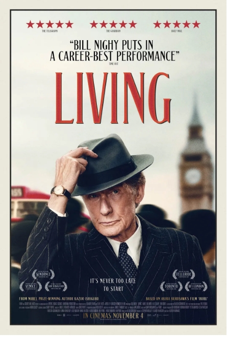 影片讲述了一位身患绝症的英国公务员,在生命最后时光里寻找存在意义的故事。与黑泽明原作中东京的市井气息不同,新版将舞台搬到了1950年代的伦敦。石黑一雄在改编时保留了原作的灵魂,但注入了英伦文化特有的克制与含蓄。威廉姆斯先生每天机械地处理着堆积如山的公文,直到医生告诉他只剩下几个月生命时,这个谨小慎微的绅士才开始真正活着。