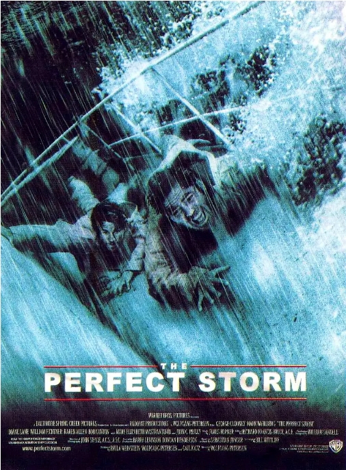 2000年上映的灾难片《完美风暴》(The Perfect Storm)改编自塞巴斯蒂安·荣格尔的同名纪实文学作品,真实再现了1991年安德莉亚·盖尔号渔船遭遇的世纪风暴。这场被气象学家称为完美风暴的极端天气事件,实际上是飓风格雷斯与北美大陆两股冷锋相遇形成的罕见气象现象。