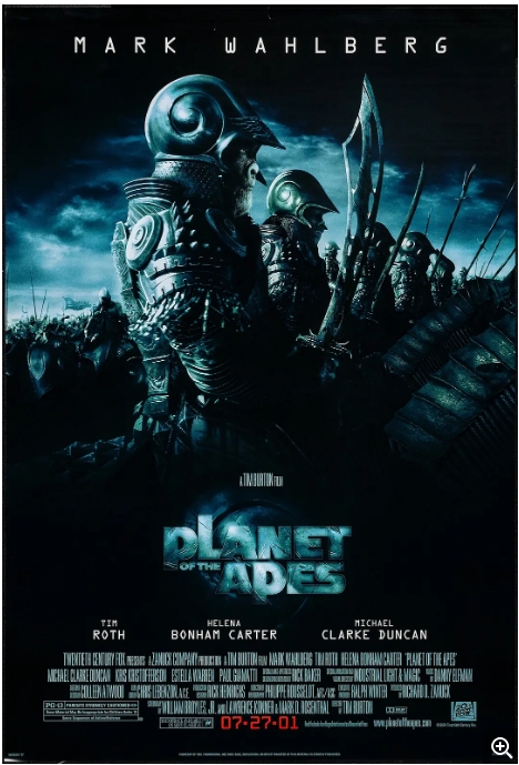 2001年上映的《决战猩球》(Planet of the Apes)是导演蒂姆·波顿对1968年经典科幻片的重新诠释。这部充满视觉冲击力的科幻冒险片,不仅延续了原作的哲学思考,还注入了波顿标志性的暗黑美学风格。