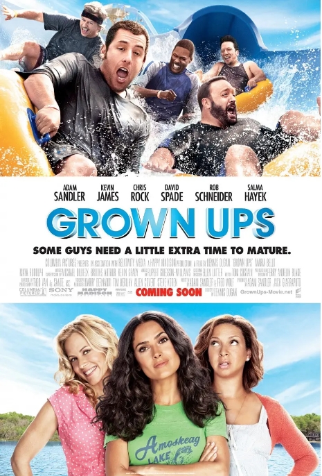 2010年上映的《长大成人》(Grown Ups)是一部典型的美式合家欢喜剧,由喜剧天王亚当·桑德勒领衔编剧并主演。这部电影集结了凯文·詹姆斯、克里斯·洛克等一众喜剧大咖,讲述五个童年好友在少年篮球教练葬礼后重聚,带着各自家庭在湖边别墅度过周末的故事。
