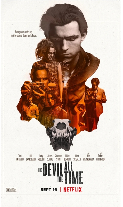 《神弃之地》(The Devil All the Time)改编自唐纳德·雷·波洛克2011年的同名小说,导演安东尼奥·坎波斯用阴郁的镜头语言,将美国俄亥俄州与西弗吉尼亚州交界处虚构的神弃之地科诺托镇搬上银幕。影片通过多线叙事交织出一个横跨1945至1965年的黑暗寓言,其中宗教狂热、暴力循环与道德崩塌构成了一幅令人窒息的美国乡村图景。