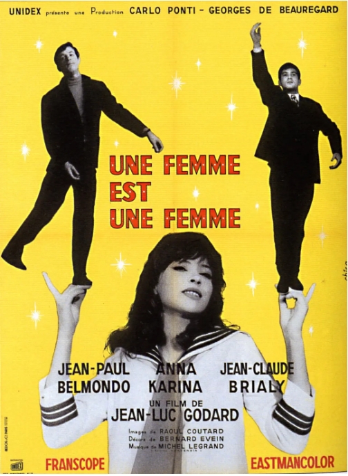 1961年上映的《女人就是女人》(Une femme est une femme)是法国新浪潮旗手让-吕克·戈达尔献给当时妻子安娜·卡里娜的一封电影情书。这部充满实验精神的歌舞喜剧片,用现在的话说堪称元电影的早期典范——它既在讲述爱情故事,又在不断提醒观众你们正在看一部电影。