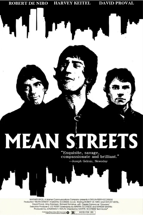1973年上映的《穷街陋巷》(Mean Streets)是马丁·斯科塞斯早期代表作,这部成本仅50万美元的黑帮片被誉为新好莱坞电影运动的重要里程碑。影片以纽约小意大利区为背景,用16毫米胶片拍摄的粗粝画面,真实呈现了街头混混的生存困境。