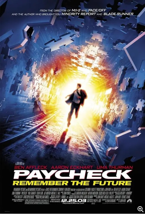 2003年上映的科幻悬疑片《记忆裂痕》(Paycheck)是好莱坞少见的吴宇森式科幻尝试。这部改编自菲利普·K·迪克同名小说的电影,将香港枪战片的节奏感与赛博朋克主题奇妙融合,由当时正值颜值巅峰的本·阿弗莱克搭档乌玛·瑟曼,演绎了一场关于记忆操纵的未来惊悚故事。