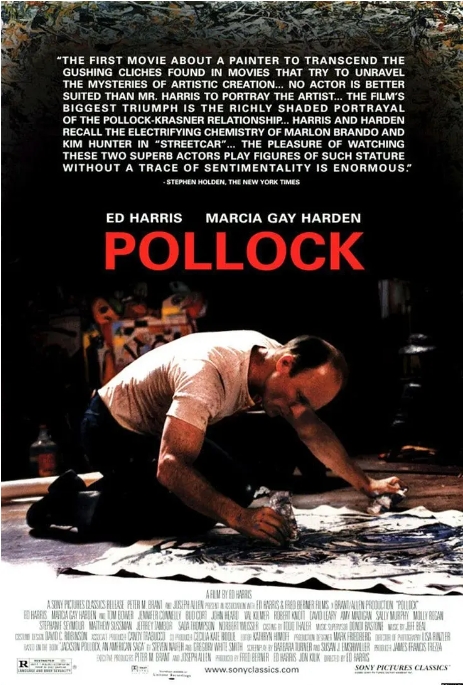2000年上映的传记电影《波洛克》由艾德·哈里斯自导自演,聚焦美国抽象表现主义大师杰克逊·波洛克跌宕起伏的艺术人生。这部获得第73届奥斯卡最佳女配角奖(马西娅·盖伊·哈登饰)的影片,用极具张力的镜头语言还原了艺术史上著名的滴画革命。