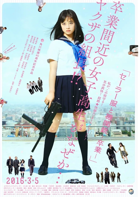 2016年上映的日本电影《水手服与机关枪:毕业》是导演前田弘二对赤川次郎经典小说的第三次影像化呈现。这部作品延续了系列标志性的“少女与黑帮”设定,但将视角聚焦于主角星泉(桥本环奈 饰)高中毕业前夕的成长抉择。影片在荒诞喜剧与温情叙事间找到微妙平衡,通过极具反差感的视觉符号——清纯水手服与冷硬枪械的并置,探讨了青春期的身份认同与社会责任的议题。