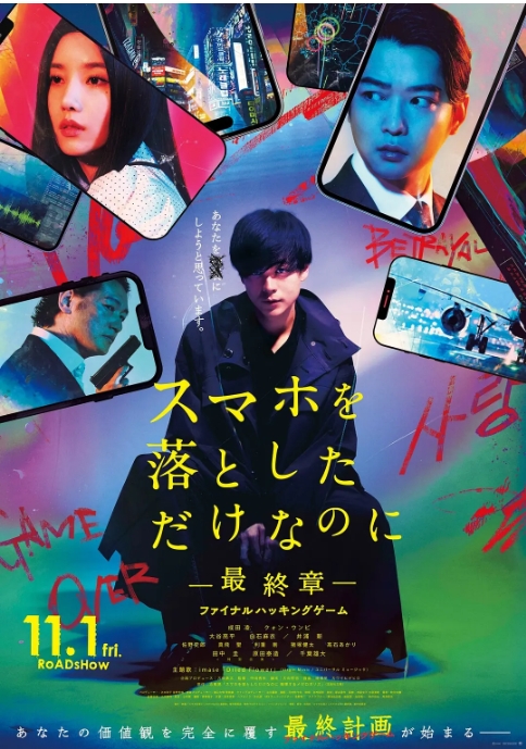 影片延续前作设定:普通上班族浦岛(成田凌饰)在丢失手机后,生活被神秘黑客(井浦新饰)彻底摧毁。这次的故事升级为一场生死攸关的黑客游戏,当女主角娜美(韩国女团IZONE成员权恩妃首次担纲日影主演)的手机落入黑客手中,她的数字身份被系统性地篡改——银行账户清零、社交账号发布犯罪声明、甚至被植入虚假的杀人记忆。这种数字替身攻击在现实中已有先例:2020年日本就发生过利用AI换脸技术伪造视频进行勒索的深度伪造犯罪。