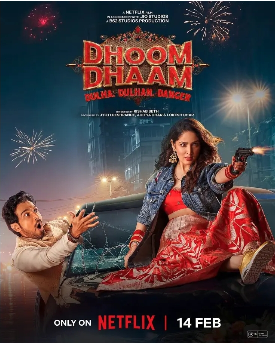 2025年情人节当天在印度网络平台上映的《新婚乐逃逃》(Dhoom Dhaam)是一部典型的宝莱坞混搭类型片,将印度观众最爱的三种元素——浪漫爱情、高能动作和爆笑喜剧完美融合。导演Rishab Seth曾参与过《德里囧事》编剧团队,这次联手新锐编剧Aarsh Vora,为传统婚礼题材注入了新鲜血液。