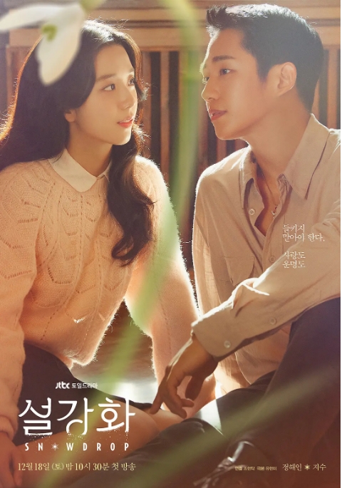 《雪滴花》这部2021年底播出的韩剧,由执导过《天空之城》的赵贤卓导演与编剧俞贤美再度合作,以1987年韩国军事独裁时期为背景,讲述了一段包裹在时代洪流中的禁忌之恋。剧中丁海寅饰演的柏林大学研究生林秀浩,实则是潜伏在韩的朝鲜间谍,与金智秀饰演的纯真女大学生殷英路在宿舍相遇,这场始于谎言的爱情在动荡时局中显得格外揪心。